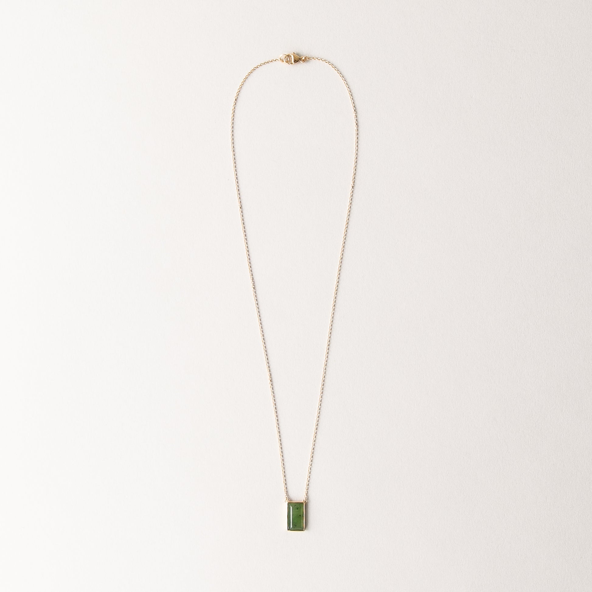 Traditional baguette cut green jade stone charm | 18k solid yellow gold chain | 16" length
