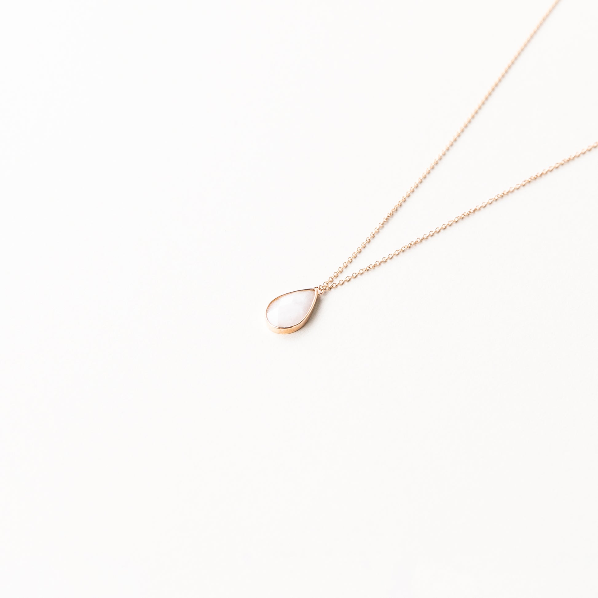Traditional pear cut lavender jade stone charm | 18k solid rose gold chain | 16" length