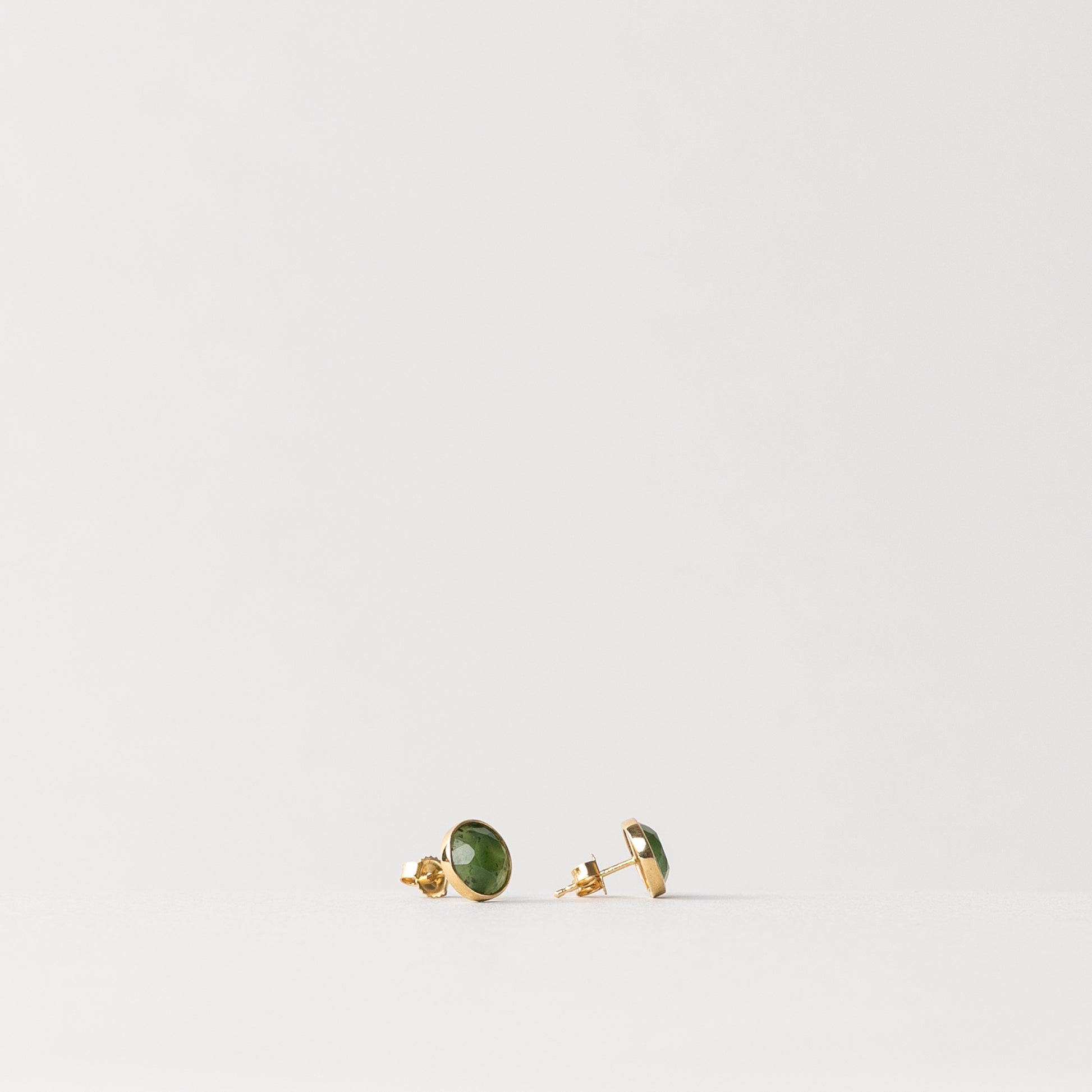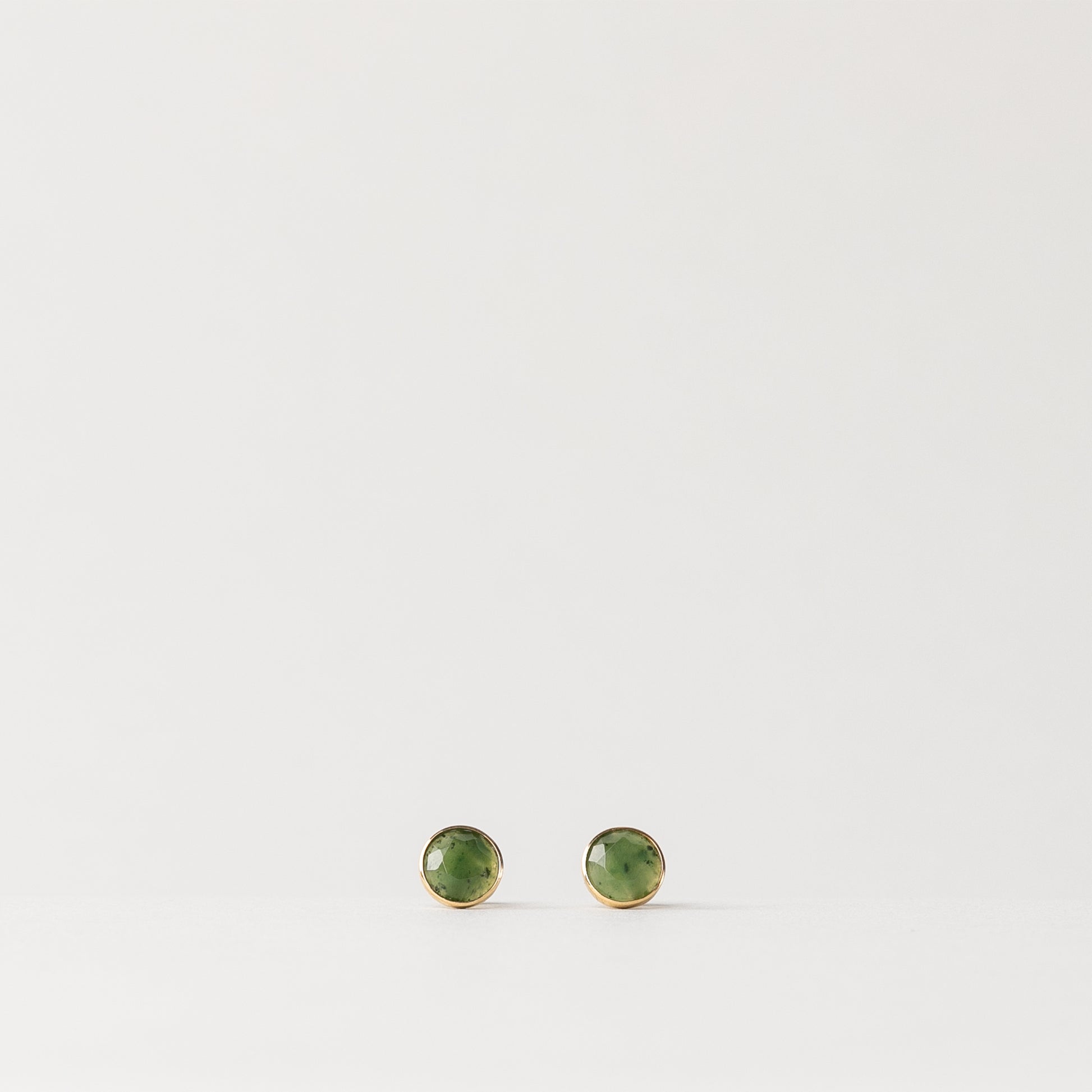 CHARMED ROUND GREEN JADE STUD EARRINGS