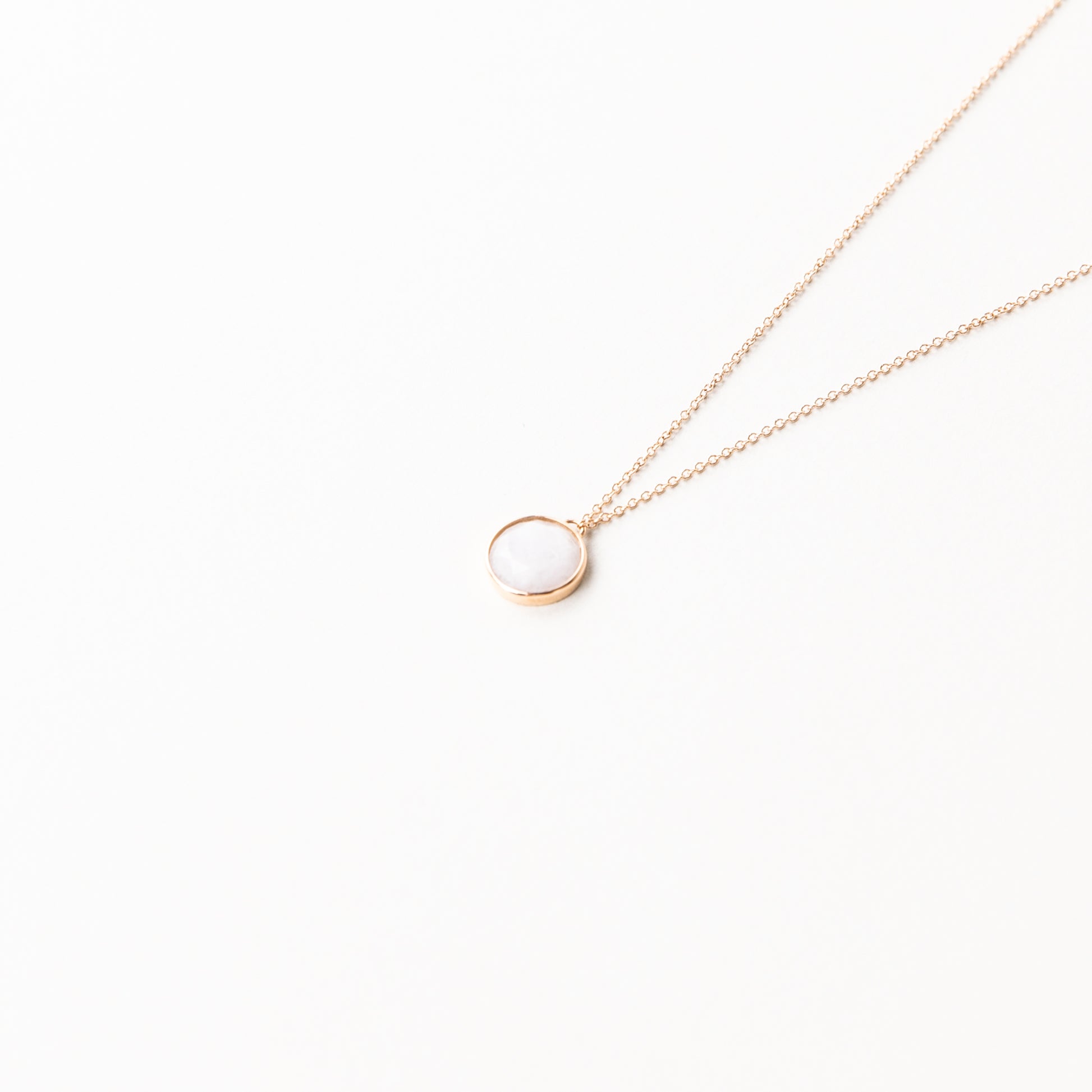 Traditional round cut lavender jade stone charm | 18k solid rose gold chain | 16" length
