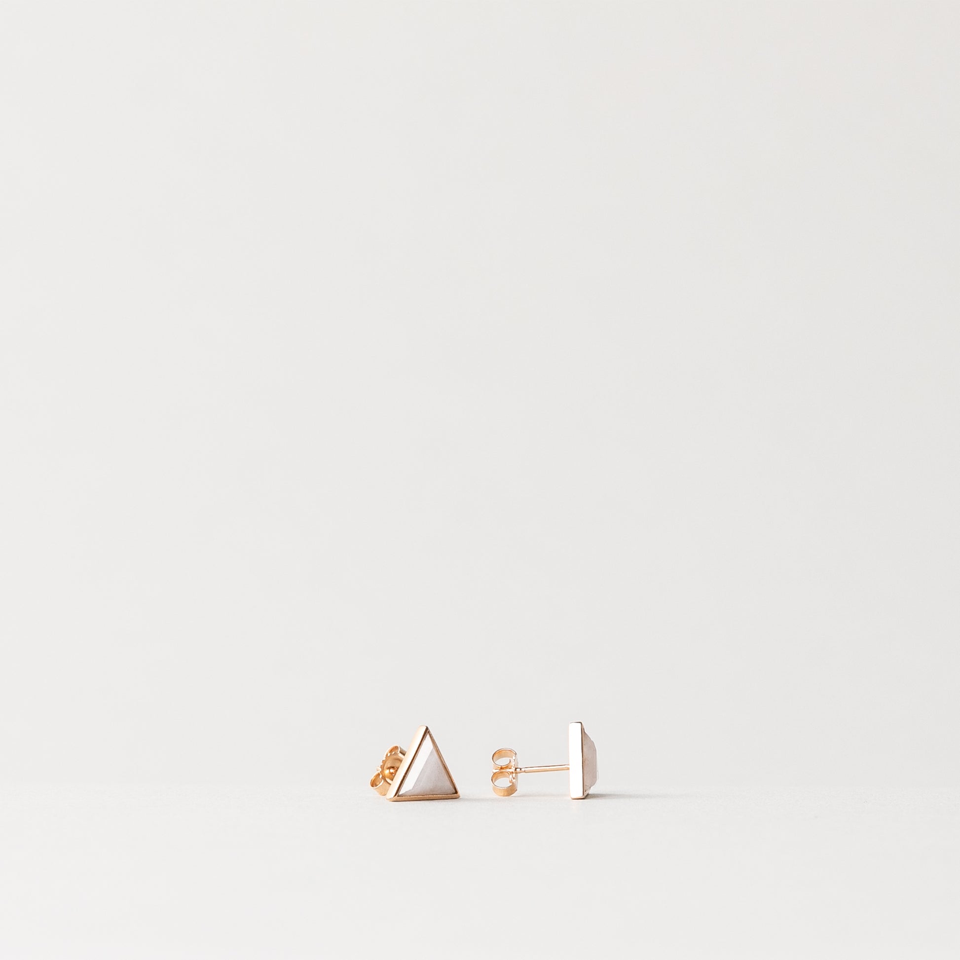 Traditional trillion cut lavender jade stone stud earrings | 18k solid rose gold