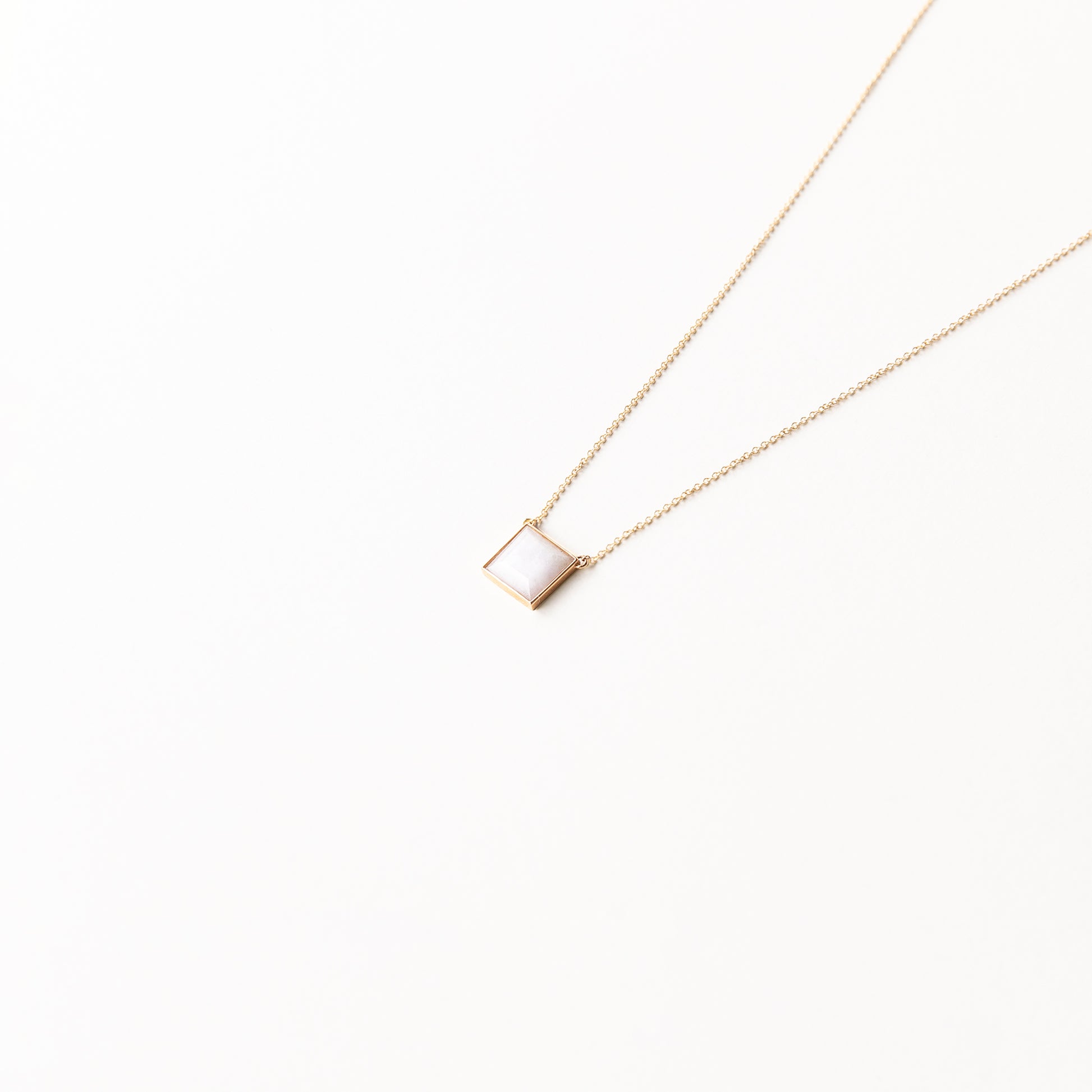 Traditional cushion cut lavender jade stone charm | 18k solid rose gold chain | 16" length